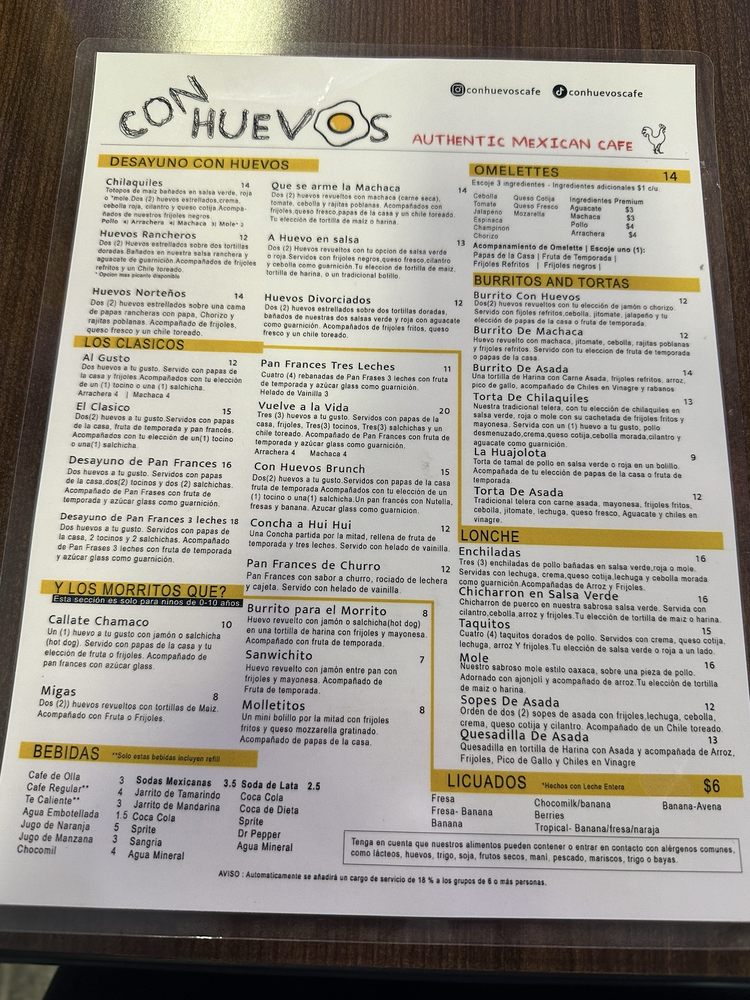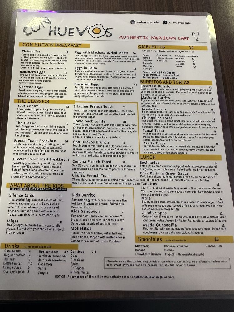 Introducing the vibrant Con Huevos located in Hawthorne, CA, offering mouth-watering breakfast and brunch options with a Mexican twist. With a menu featuring dishes like Chilaquiles Red or Green Sauce, Ranchero Eggs, and Norteos Eggs, this spot promises a flavorful start to your day. The Breakfast Burrito and Machaca Burrito are crowd favorites, packed with savory ingredients. The Classics section offers customizable egg dishes served with house potatoes and beans, showcasing their attention to traditional flavors. Customers rave about the fast service, friendly staff, and exceptional dishes like Machaka con Huevos and Chilaquiles Divorciados. With a fun and authentic atmosphere, Con Huevos is a must-visit for those craving delicious Mexican breakfast specialties. Give their chilaquiles a try and experience a culinary delight that will keep you coming back for more.